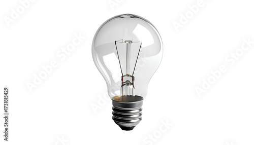 Clear, transparent lightbulb with a glowing filament, set against a black background