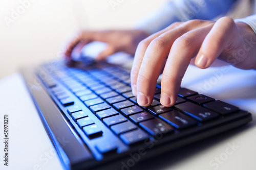 Click! Hands of a man on keyboard