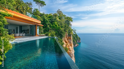 Cliff pool infinity water ocean view design luxury resort nature vegetation detail background element concept reflection shape horizon space atmosphere style dream vacation travel escape
