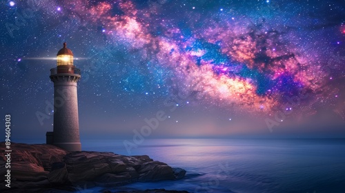 Cliffside Lighthouse Under Starry Sky: Peaceful Night Landscape Photography
