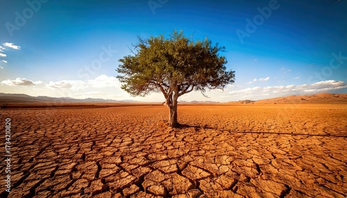 Climate change, symbolized by a tree from on dry earth