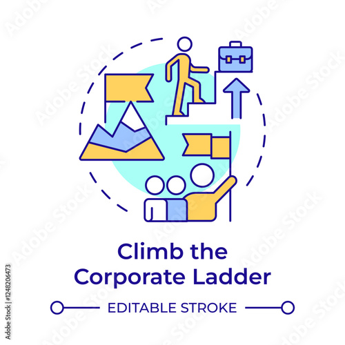 Climb corporate ladder multi color concept icon. Goal achieving, leadership. Company structure. Round shape line illustration. Abstract idea. Graphic design. Easy to use in infographic, presentation