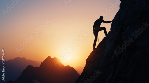 Climber Against Mountain Peaks Symbolizing Resilience and Strength
