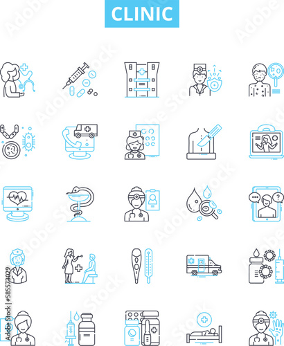 Clinic vector line icons set. Clinic, Medical, Healthcare, Outpatient, Treatment, Diagnostic, Surgery illustration outline concept symbols and signs