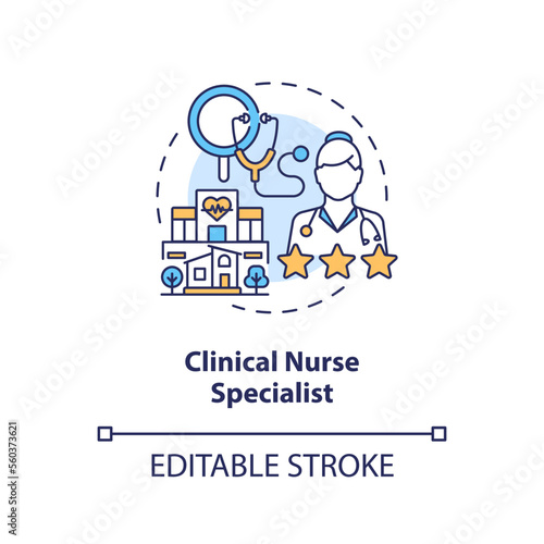 Clinical nurse specialist concept icon. Chronic care management provider abstract idea thin line illustration. Isolated outline drawing. Editable stroke. Arial, Myriad Pro-Bold fonts used