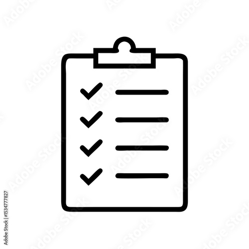Clipboard Checklist Icon Representing Task Management and To-Do List with Check Marks in Minimalist Outline Style