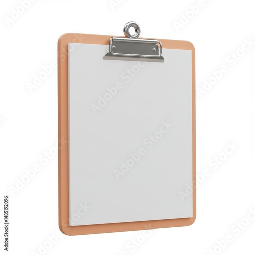 Clipboard with blank paper isolated on white background. for notes and organization use.