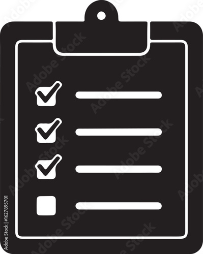 Clipboard with checklist icon in silhouette white background.