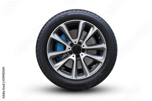Clipping path. Silver Wheel super car isolated on white background view. close-up view. Luxury wheel. Movement. Magneto wheels.