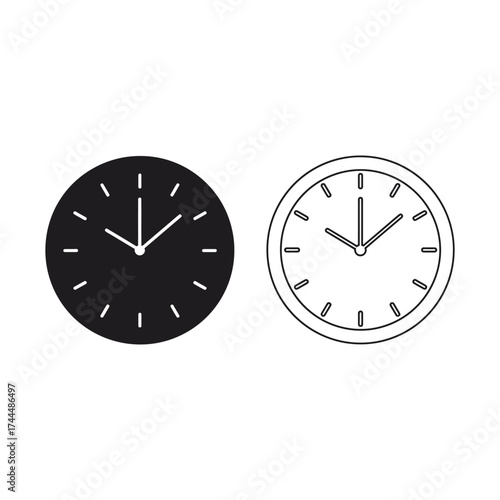 Clock icon set in black and white, time concept illustration outline watch hour minute second symbol design