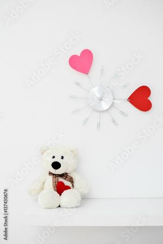 Clock with hearts on the wall