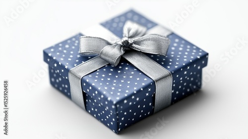 Close - up of Exquisite Blue Star - Patterned Gift Box with Silver Bow, for Holiday Gifting, E - commerce Packaging Display, Wedding Favors, Brand Marketing, Celebration Decoration Scenarios