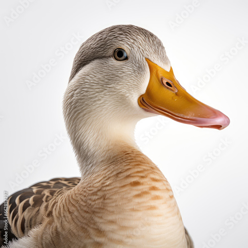 Close up a Duck, Angle to capture the whole body, studio photo, White background