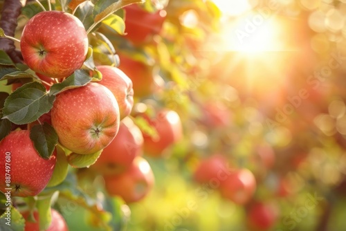 Close up Apple Trees Laden with Fruit at Dusk sunny bright day