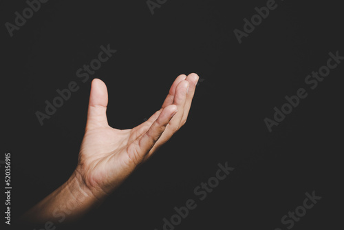 Close up Asian christian woman hands person pray and worship for thank god in church with black background, The concept for faith, spirituality and religion