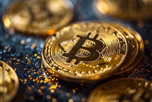 Close up golden bitcoin falling down showing crash of crypto trading market. Concept of financial crisis and global recession, minning or blockchain technology.