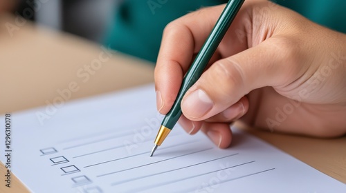 Close Up Hand Writing Checklist with Dark Green Pen on White Paper