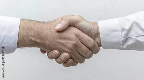 Close up Handshake Two Men in White Shirts Shake Hands Against a Plain White Background
