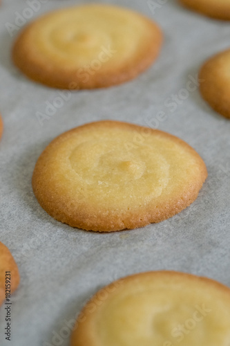 Close up Homemade White Chocolate Cat’s Tongue Cookies . (selective Focus)