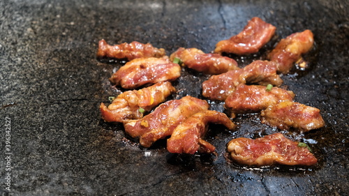 close up Korean bulgogi on slate. Traditional Korean barbecue.