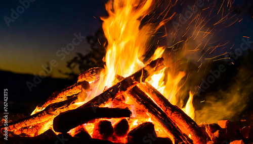 Close up of a Bonfire at night