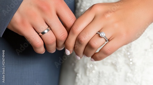 Close Up Of A Bride And Groom's Hands Showing Wedding Rings