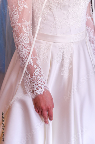 Close up of a bride's body in her wedding dress