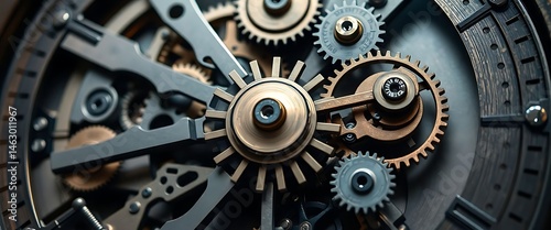 close up of a clock face with gears