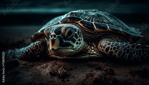 Close up of a cute sea turtle swimming in the blue sea generated by AI