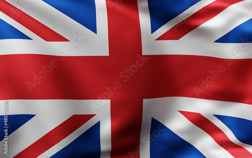 Close up of a flag of United Kingdom . 3d rendering of Union Jack