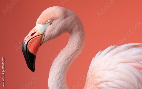 Close up of a flamingo on pink background. AI, Generative AI
