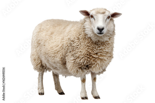 Close up of a fluffy white sheep. Farm animal.