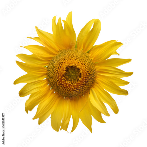 Close up of a fully open sunflower with transparent background, perfect for graphic design projects