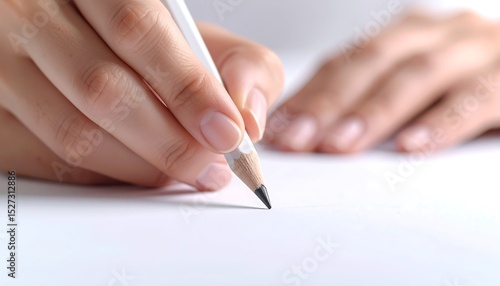 Close up of a hand holding a pencil, drawing a line on white paper.