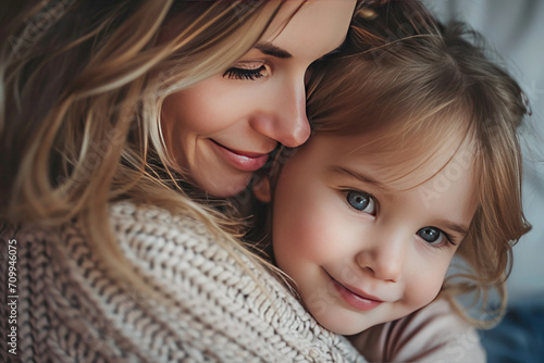 close up of a mother and child hugging, Mother's Day concept