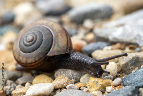 Close Up of a Single Land Snail on Rocky Ground