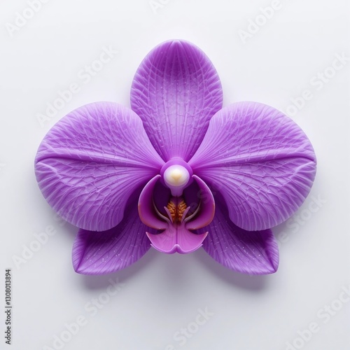 Close up of a Single Purple Orchid Flower on White Background Detailed Petals Botanical Photography