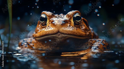Close Up of a Toad in Water with Rain Drops - Realistic Image