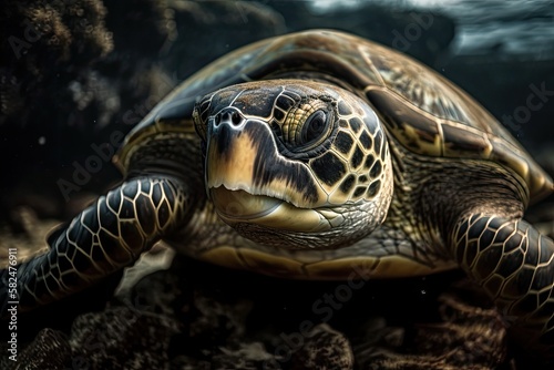 Close up of a turtle underwater. Generative AI