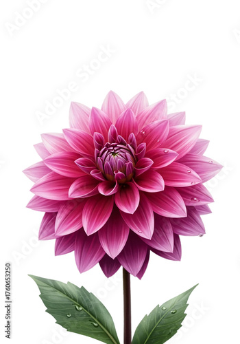 Close up of a vibrant pink dahlia flower with layered petals against a stark black background