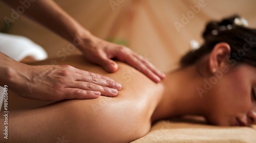 Close up of a woman receiving a relaxing massage on her back.