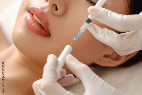 Close up of a woman relaxing as a professional administers a cosmetic injection treatment