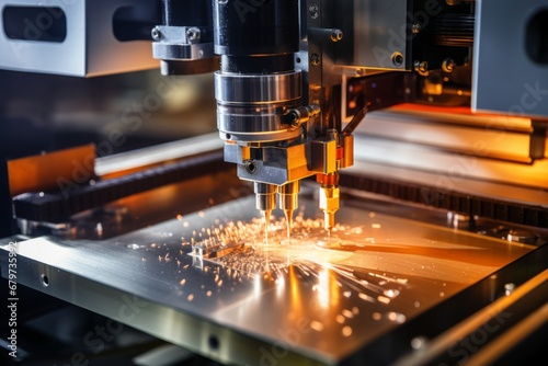 Close up of advanced metalworking cnc laser milling machineHigh tech machining concept.