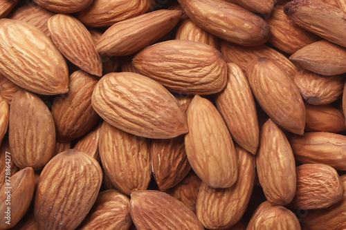 Close up of almond nuts background. Healthy food concept.