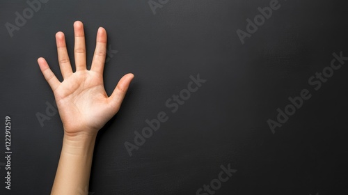 Close up of an outstretched hand against a dark background with ample copy space for promotional or informational text