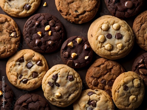 Close Up of Assorted Chocolate Chip Cookies with Milk Chocolate and White Chocolate Chips