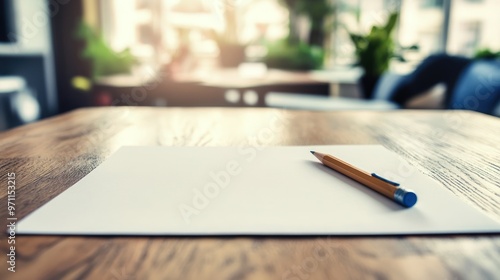 Close up of Blank Paper Tablet and Blank White Sheet pen on Wooden Table, Paper Tablet Texture Background with Copy Space. Ai generated image