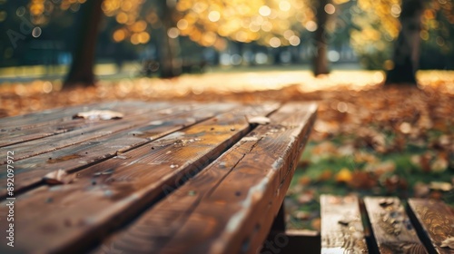 Close up of brown wooden table and bench