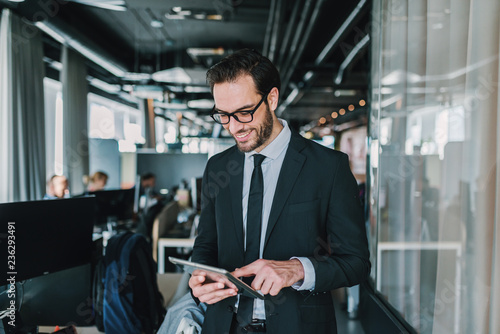 Close up of businessman using tablet.