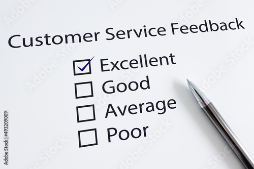 Close up of Customer Service Feedback form. Tick placed in excellent check-box.